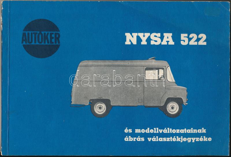 NYSA 522 típusú gépjármű és modellváltozatainak ábrás választékjegyzéke részletes műszaki rajzokkal és adatokkal, az Autóker műszaki és dokumentációs osztályának kiadásában, szép állapotban