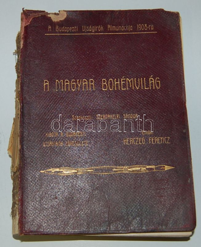 Szerdahelyi Sándor A magyar bohémvilág - Budapesti ujságírók almanachja 1908-ra. Gazdag képanyaggal Bp. 1908. Bp. Ujságírók Egyesülete. Aranyozott egészvászon kötésben. Felül aranyozott lapszélekkel. (Gerinc hiányzik)