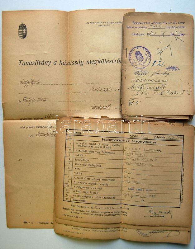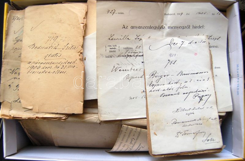 cca 1920-1950 Hatalmas, több száz darabos okmány hagyaték tétel, főkén... https://www.darabanth.com/de/149-Fernauktion/149.0/Andere-Sammelgebiete/Dokument~196/cca-1920-1950-Hatalmas-tobb-szaz-darabos-okmany-hagyatek-tetel-fokent-hazassagi-anyakony~II451505