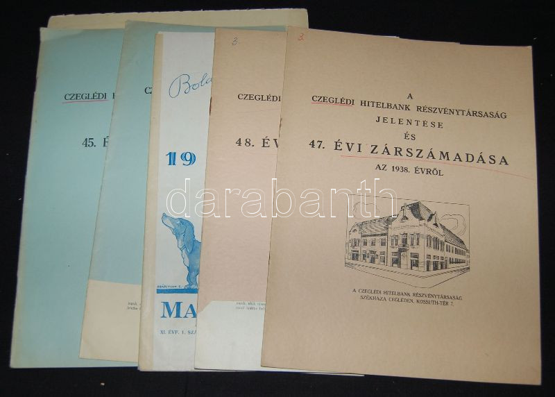 Beschreibung: Czeglédi hitelbank 4 db zárszámadás + 1 tablófotó