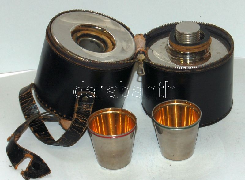 Kétrészes rozsdamentes italos flaska bőr tokban, 2 pohárral https://www.darabanth.com/de/149-Fernauktion/149.0/Andere-Sammelgebiete/Flohmarkt~600014/Ketreszes-rozsdamentes-italos-flaska-bor-tokban-2-poharral~II453037