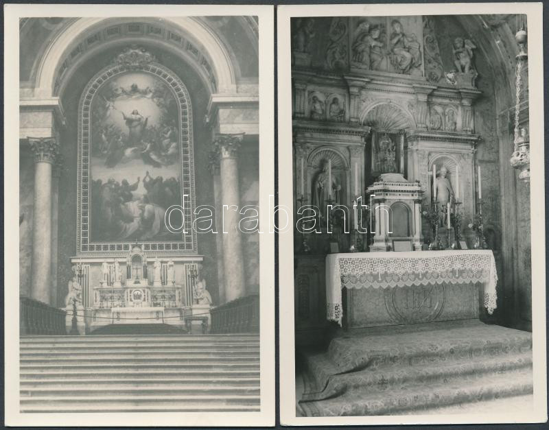 Beschreibung: 1955 2 db fotó az esztergomi bazilika főoltáráról és a Bakócz-kápolnáról