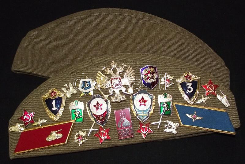 2 db szovjet katonai sapka, egyiken 24 db fegyvernemi, sport és egyéb ... https://www.darabanth.com/de/149-Fernauktion/149.0/Andere-Sammelgebiete/Militaria~205/2-db-szovjet-katonai-sapka-egyiken-24-db-fegyvernemi-sport-es-egyeb-jelvennyel-Soviet-miliita~II453034
