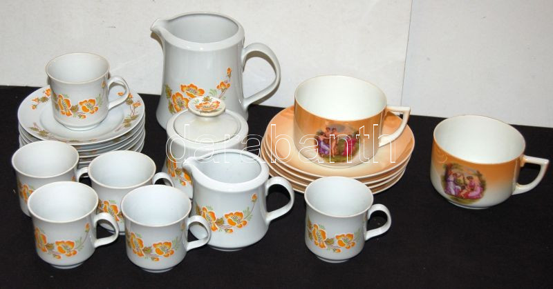 Beschreibung: 2 db klf porcelán teás készlet: tányérok, csészék, kancsók, kiöntők, stb.