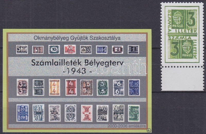 Beschreibung: Számlailleték bélyegterv emlékív és emlékbélyeg az Okmánybélyeg Gyűjtők Szakosztályának kiadása
