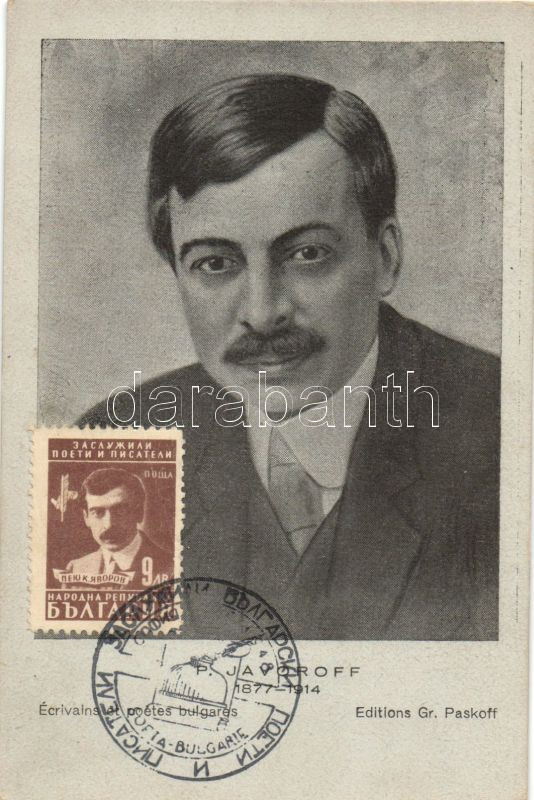 Peyo Yavorov, Bulgarian poet So.Stpl https://www.darabanth.com/de/149-Fernauktion/149.0/Ansichtskarten/Beruhmte-Personlichkeit~600069/Peyo-Yavorov-Bulgarian-poet-SoStpl~II440208