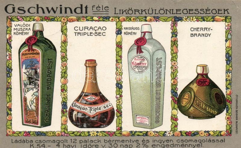 Gschwindt liqueurs litho (EB) https://www.darabanth.com/de/149-Fernauktion/149.0/Ansichtskarten/Bier-Alkohol-Tabak~600083/Gschwindt-liqueurs-litho-EB~II450991