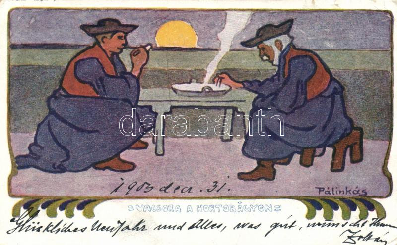 Supper on the Hortobágy, Hungarian folklore s: Pálinkács (b) https://www.darabanth.com/de/149-Fernauktion/149.0/Ansichtskarten/Folklore~600065/Supper-on-the-Hortobagy-Hungarian-folklore-s-Palinkacs-b~II453017