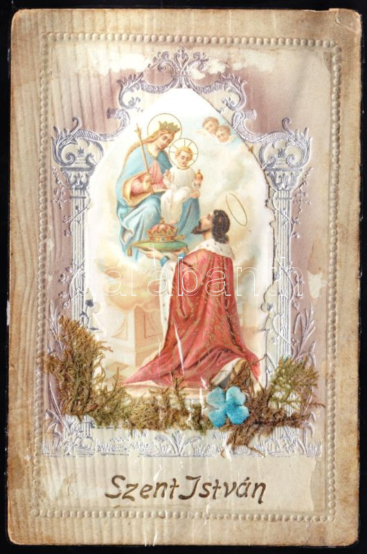 St István Emb. litho with real leaves https://www.darabanth.com/de/149-Fernauktion/149.0/Ansichtskarten/Herrscher-Politiker~600086/St-Istvan-Emb-litho-with-real-leaves~II369238