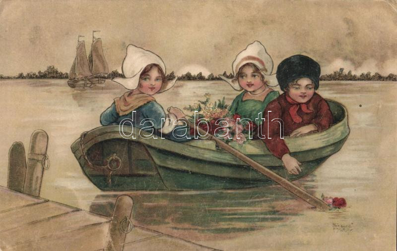 Dutch children, boat litho s: Florence Hardy https://www.darabanth.com/de/149-Fernauktion/149.0/Ansichtskarten/Kinder~600066/Dutch-children-boat-litho-s-Florence-Hardy~II453721