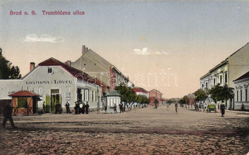 Bród Trumbic street, Hunter´s restaurant https://www.darabanth.com/de/149-Fernauktion/149.0/Ansichtskarten/Kroatien~600009/Brod-Trumbic-street-Hunters-restaurant~II452974