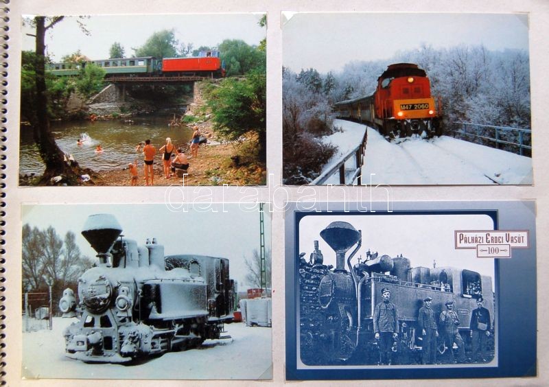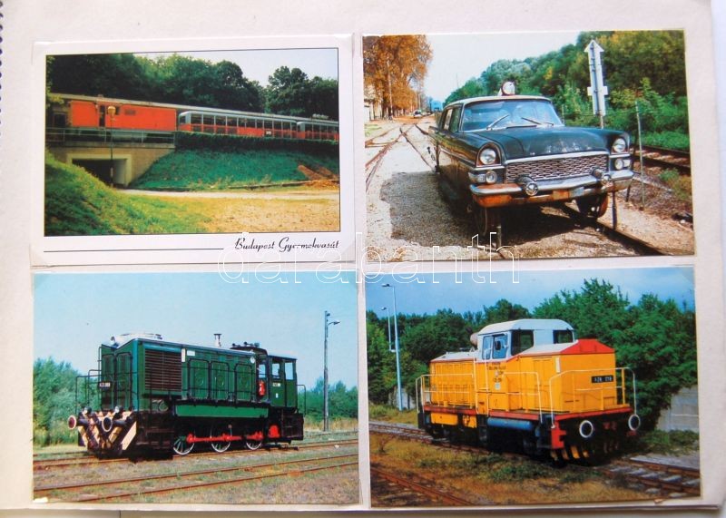 Beschreibung: 160 db vegyes vasutas képeslap vázlatfüzetbe rendezve - reprintek, MÁV szerelvények, speciális vasutak, villamosok, érdekességek