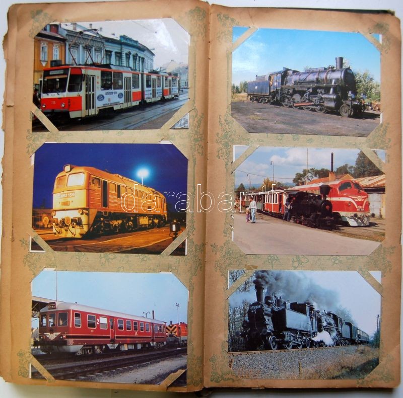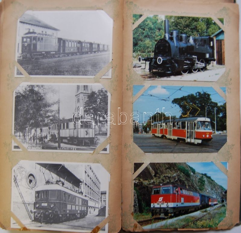 Beschreibung: 190 db vegyes vasutas képeslap régi albumba rendezve - reprintek, MÁV szerelvények, speciális vasutak, villamosok, érdekességek