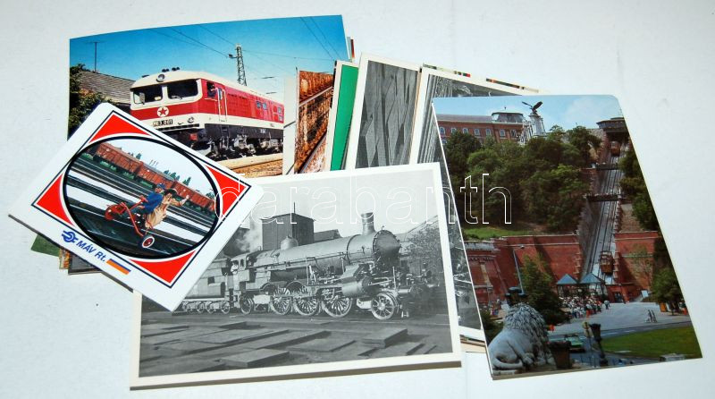 Beschreibung: 74 db vegyes használatlan vasutas képeslap, nagyrészt MÁV szerelvényekkel