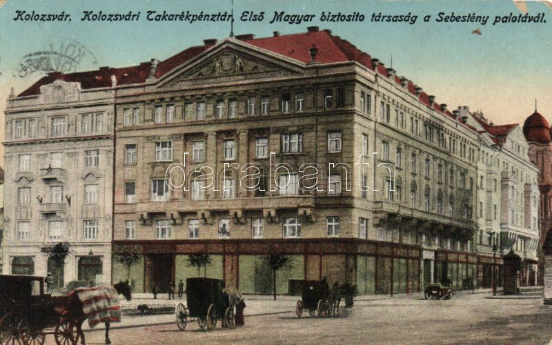 Kolozsvár savings bank, Sebestyén palace https://www.darabanth.com/de/149-Fernauktion/149.0/Ansichtskarten/Siebenburgen~600006/Kolozsvar-savings-bank-Sebestyen-palace~II451246