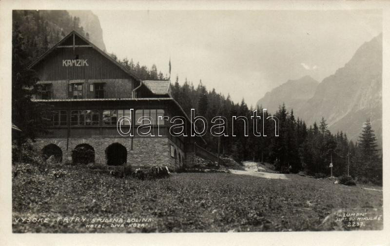 Tátra Tarpataki-völgy Hotel Divá Koza https://www.darabanth.com/de/149-Fernauktion/149.0/Ansichtskarten/Slowakei~600007/Tatra-Tarpataki-volgy-Hotel-Diva-Koza~II452745