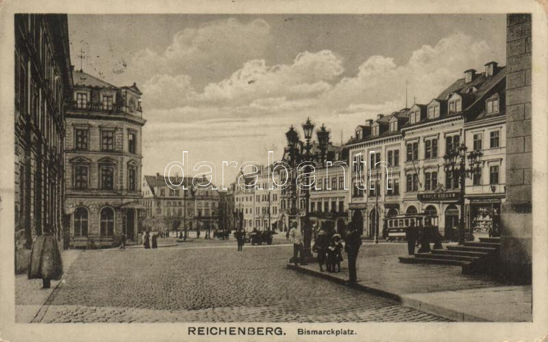 Liberec (Reichenberg) Bismarck square with tram https://www.darabanth.com/de/149-Fernauktion/149.0/Ansichtskarten/Tschechische-Republik~600023/Liberec-Reichenberg-Bismarck-square-with-tram~II451795