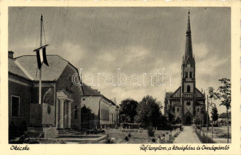 Ókécske Református Templom, Községháza és országzászló https://www.darabanth.com/de/149-Fernauktion/149.0/Ansichtskarten/Ungarn~600005/Okecske-Reformatus-Templom-Kozseghaza-es-orszagzaszlo~II412900