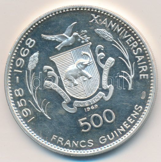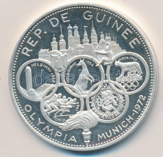 Guinea... https://www.darabanth.com/de/149-Fernauktion/149.0/Numismatik/Auslandische-Munzen~600112/Guinea-1969-500Fr-Ag-XX-Nyari-Olimpia-TPP-csak-7200db---Guinea-1969-500-Francs-Ag-Munich-~II453959