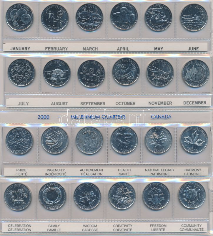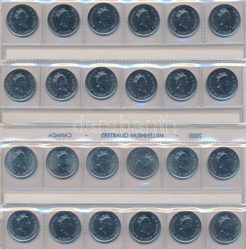 Kanada 1999. 25c (12x) + 2000. 25c (12x) mindkettő Millenniumi sorozat... https://www.darabanth.com/de/149-Fernauktion/149.0/Numismatik/Auslandische-Munzen~600112/Kanada-1999-25c-12x-plus-2000-25c-12x-mindketto-Millenniumi-sorozat-foliaban-T1---Canada-199~II453029