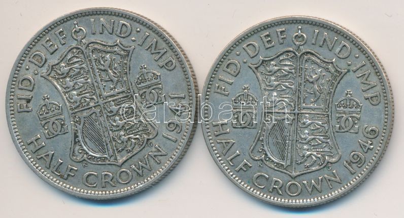 Great Britain 1941. 1/2 Crown Ag "George VI" + 1946. 1/2 Crown Ag "George VI" C:XF/VF