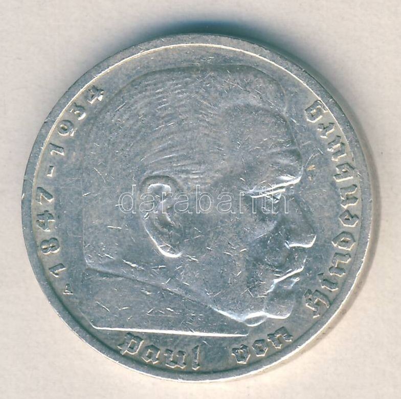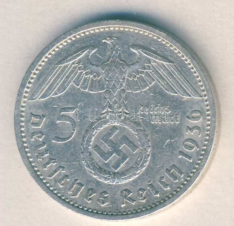 German Third Reich... https://www.darabanth.com/de/149-Fernauktion/149.0/Numismatik/Auslandische-Munzen~600112/Nemet-3-Birodalom-1936A-5M-Ag-Hindenburg-T2---German-Third-Reich-1936A-5-Marks-Ag-Hindenburg~II451472