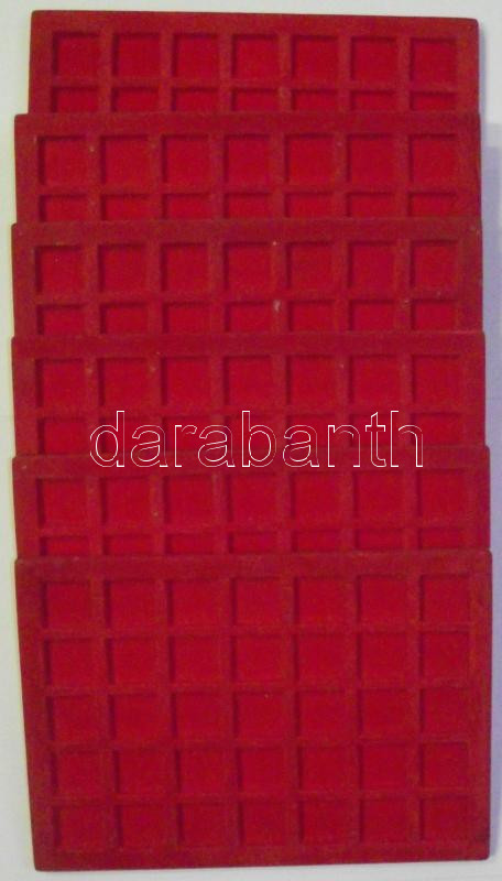 Beschreibung: 6db használt éremtartó tálca 30x30mm-es érmékhez,piros színű