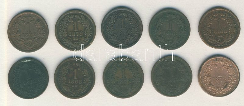 1868. 1Kr "angyalos címer" (5x) + 1872. 1Kr "angyalos címer" (5x) T:2-... https://www.darabanth.com/de/149-Fernauktion/149.0/Numismatik/Ungarische-Munzen~600101/1868-1Kr-angyalos-cimer-5x-plus-1872-1Kr-angyalos-cimer-5x-T2-3-3-~II452201