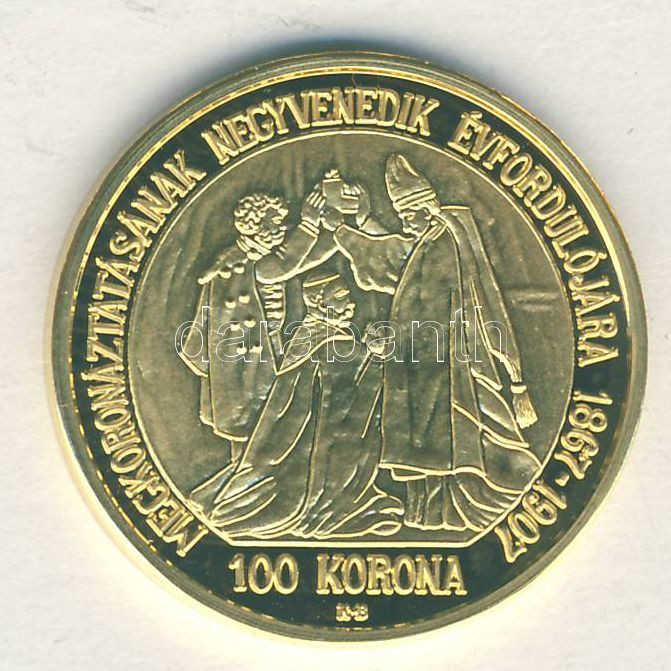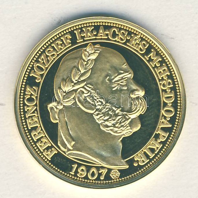 1907. 100K Ag utánverete aranyozva T:PP https://www.darabanth.com/de/149-Fernauktion/149.0/Numismatik/Ungarische-Munzen~600101/1907-100K-Ag-utanverete-aranyozva-TPP~II453669