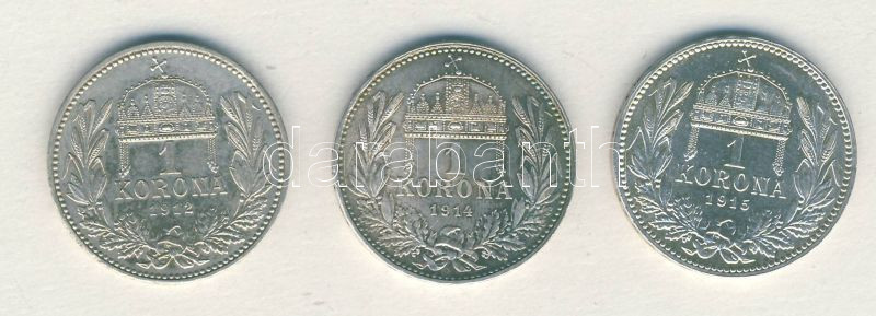 1912-1915. 1K Ag (3x) klf évszámmal T:2+,2 https://www.darabanth.com/de/149-Fernauktion/149.0/Numismatik/Ungarische-Munzen~600101/1912-1915-1K-Ag-3x-klf-evszammal-T2plus-2~II452044