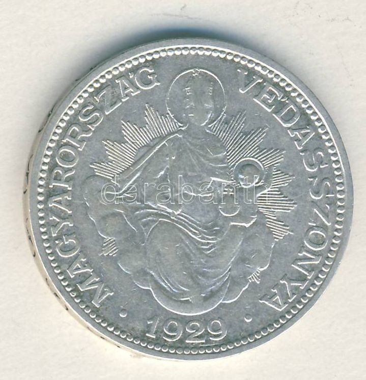 1929. 2P Ag "Madonna" T:3 https://www.darabanth.com/de/149-Fernauktion/149.0/Numismatik/Ungarische-Munzen~600101/1929-2P-Ag-Madonna-T3~II451033
