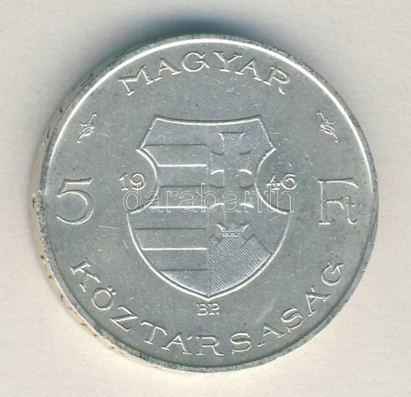 1946. 5Ft Ag "vastag Kossuth" T:2 https://www.darabanth.com/de/149-Fernauktion/149.0/Numismatik/Ungarische-Munzen~600101/1946-5Ft-Ag-vastag-Kossuth-T2~II451022