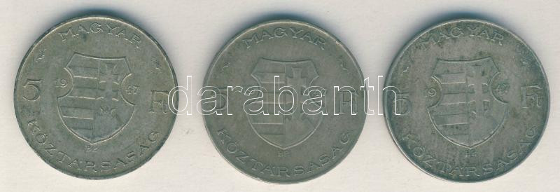 1947. 5Ft Ag "Kossuth" (3x) T:2-,3 ph. https://www.darabanth.com/de/149-Fernauktion/149.0/Numismatik/Ungarische-Munzen~600101/1947-5Ft-Ag-Kossuth-3x-T2-3-ph~II450644