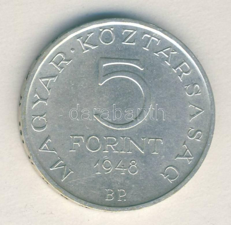 1948. 5Ft Ag "Petőfi" T:2+ https://www.darabanth.com/de/149-Fernauktion/149.0/Numismatik/Ungarische-Munzen~600101/1948-5Ft-Ag-Petofi-T2plus~II451882