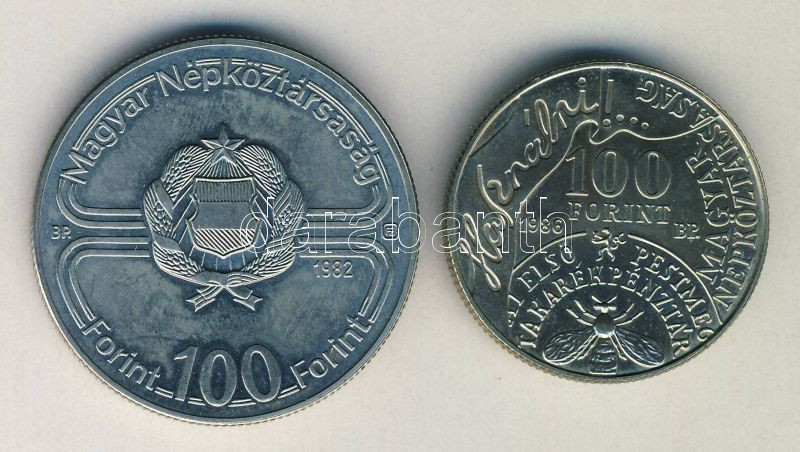 Beschreibung: 1982. 100Ft "Labdarúgó VB" T:BU + 1986. 100Ft "Fáy András" T:BU