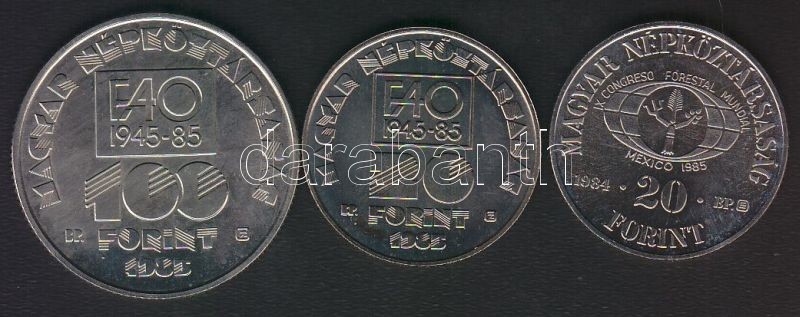 1983. 100Ft + 20Ft "FAO" + 1985. 20Ft "FAO" T:BU https://www.darabanth.com/de/149-Fernauktion/149.0/Numismatik/Ungarische-Munzen~600101/1983-100Ft-plus-20Ft-FAO-plus-1985-20Ft-FAO-TBU~II451361