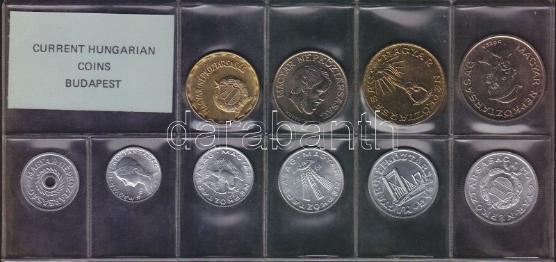 1987. 2f-20Ft 10db klf érmés forgalmi sor fóliatokban T:1 https://www.darabanth.com/de/149-Fernauktion/149.0/Numismatik/Ungarische-Munzen~600101/1987-2f-20Ft-10db-klf-ermes-forgalmi-sor-foliatokban-T1~II447760