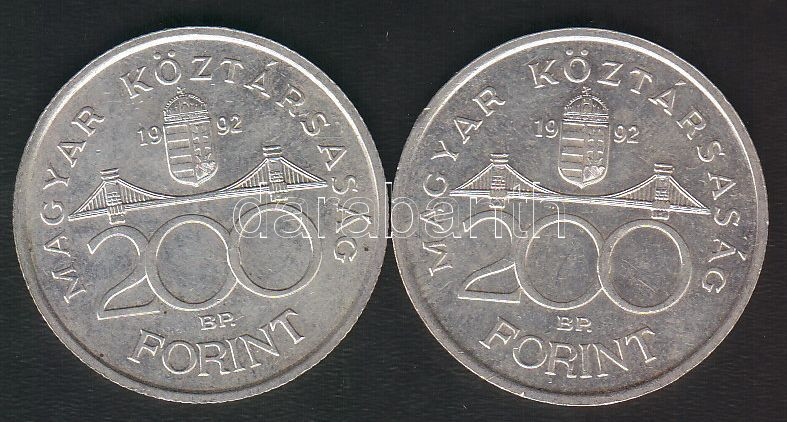 1992. 200DFt Ag "MNB" (2x) T:2 ph. https://www.darabanth.com/de/149-Fernauktion/149.0/Numismatik/Ungarische-Munzen~600101/1992-200DFt-Ag-MNB-2x-T2-ph~II453453