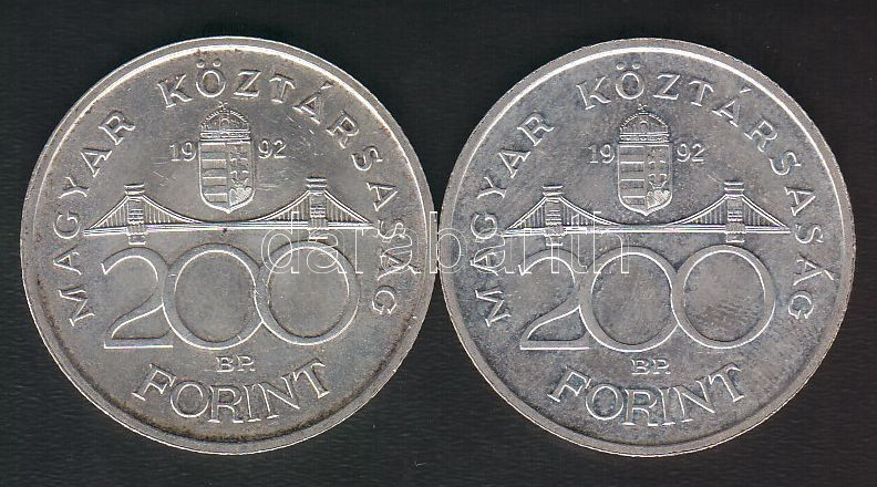 1992. 200Ft Ag "MNB" (2x) T:1-/2 https://www.darabanth.com/de/149-Fernauktion/149.0/Numismatik/Ungarische-Munzen~600101/1992-200Ft-Ag-MNB-2x-T1-2~II450601