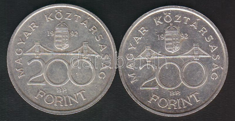 1992. 200Ft Ag "MNB" (2x) T:2+ https://www.darabanth.com/de/149-Fernauktion/149.0/Numismatik/Ungarische-Munzen~600101/1992-200Ft-Ag-MNB-2x-T2plus~II450602