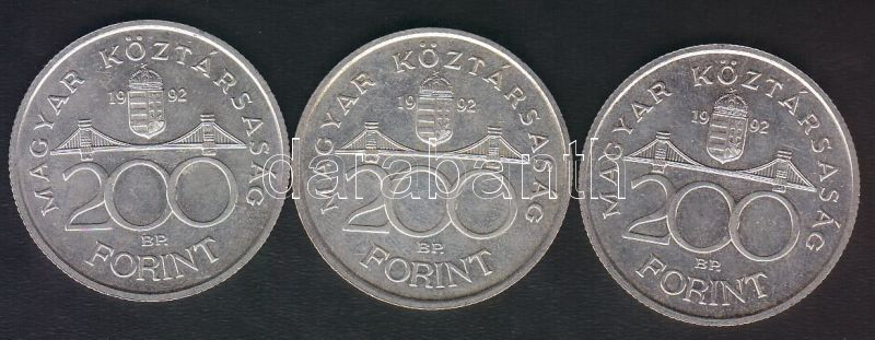 Beschreibung: 1992. 200Ft Ag "MNB" (3x) T:1-,2