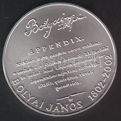 2002. 3000Ft Ag "Bolyai János" T:BU Csak 3000db! https://www.darabanth.com/de/149-Fernauktion/149.0/Numismatik/Ungarische-Munzen~600101/2002-3000Ft-Ag-Bolyai-Janos-TBU-Csak-3000db~II452188