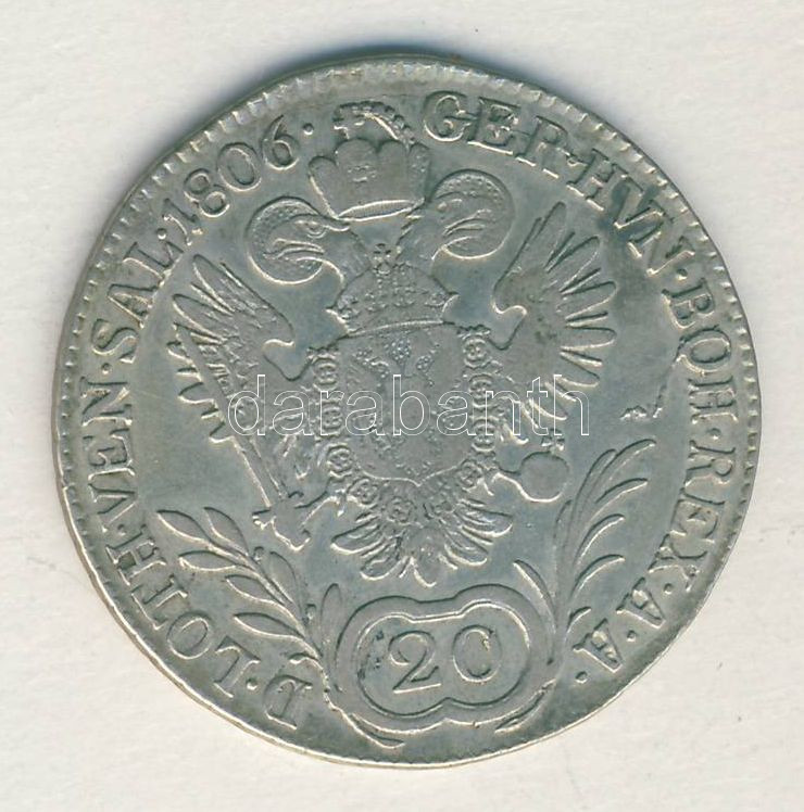 Ausztria/magyar verdejel 1806B 20Kr Ag "II. Ferenc" T:3,3+ https://www.darabanth.com/de/149-Fernauktion/149.0/Numismatik/Ungarische-Munzen~600101/Ausztriamagyar-verdejel-1806B-20Kr-Ag-II-Ferenc-T3-3plus~II453735