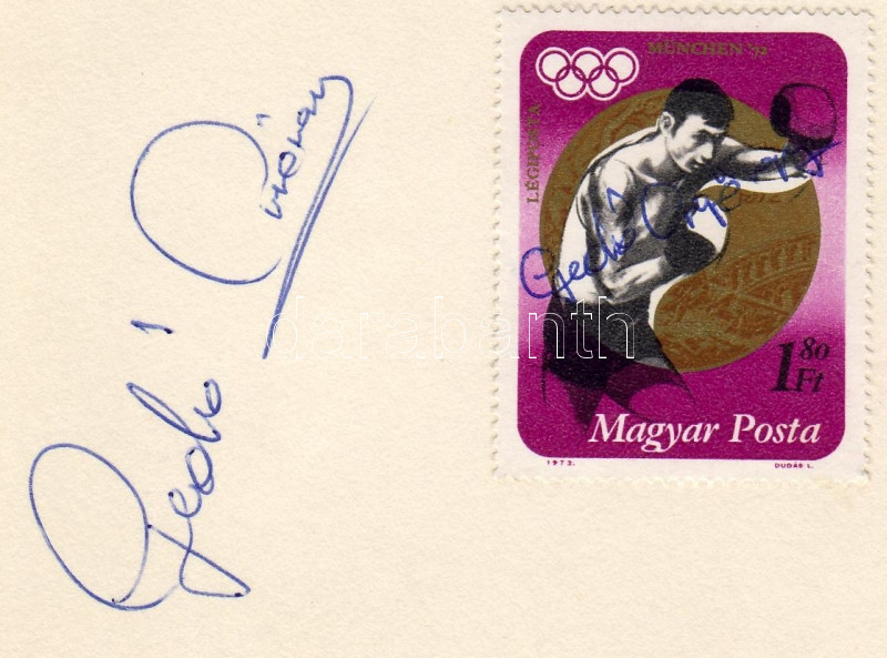Beschreibung: Sport aláírás 1972 Gedó György olimpiai bajnok ökölvívó aláírása