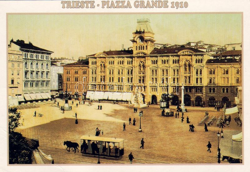 Olaszország: Trieszt piactere 1910.-ben, reprodukció (használt) https://www.darabanth.com/de/15-Fernauktion/15.0/Ansichtskarten/~83/Olaszorszag-Trieszt-piactere-1910-ben-reprodukcio-hasznalt~II23719