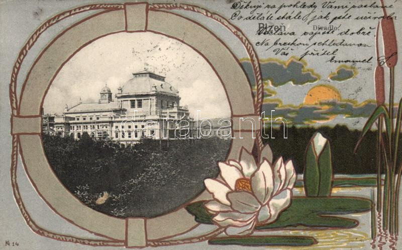 Plzen Theatre, Art Nouveau litho https://www.darabanth.com/de/15-Gross-Auktion/15.1/Ansichtskarten-Ausland/Tschechische-Republik~4562/Plzen-Theatre-Art-Nouveau-litho~II592637