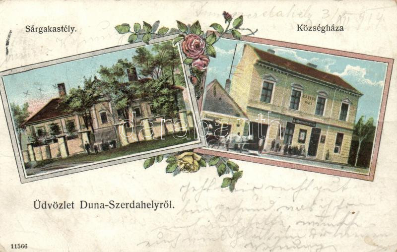 Beschreibung: Dunaszerdahely Sárga-kastély, községháza / castle, town hall, pharmacy