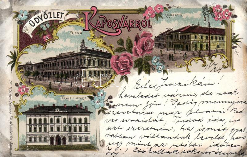 Beschreibung: 1899 Kaposvár laktanya, Ceiszler János kereskedése litho (EB)