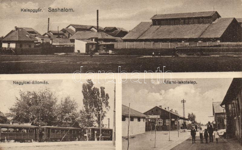 Budapest XVI. Sashalom; kalapgyár, Nagyicei állomás, állami lakótelep https://www.darabanth.com/de/15-Gross-Auktion/15.1/Ansichtskarten-Ungarn/Ungarn~4538/Budapest-XVI-Sashalom-kalapgyar-Nagyicei-allomas-allami-lakotelep~II602392