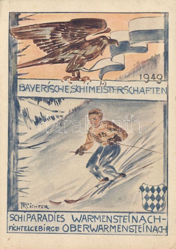 Warmensteinach in the Fichtelgebirge, Bavarian Ski Championship 1949, ... https://www.darabanth.com/de/15-Gross-Auktion/15.1/Thematik-und-Kunstlerkarten/Sport~4645/Warmensteinach-in-the-Fichtelgebirge-Bavarian-Ski-Championship-1949-s-Karl-Richter-EK~II610684